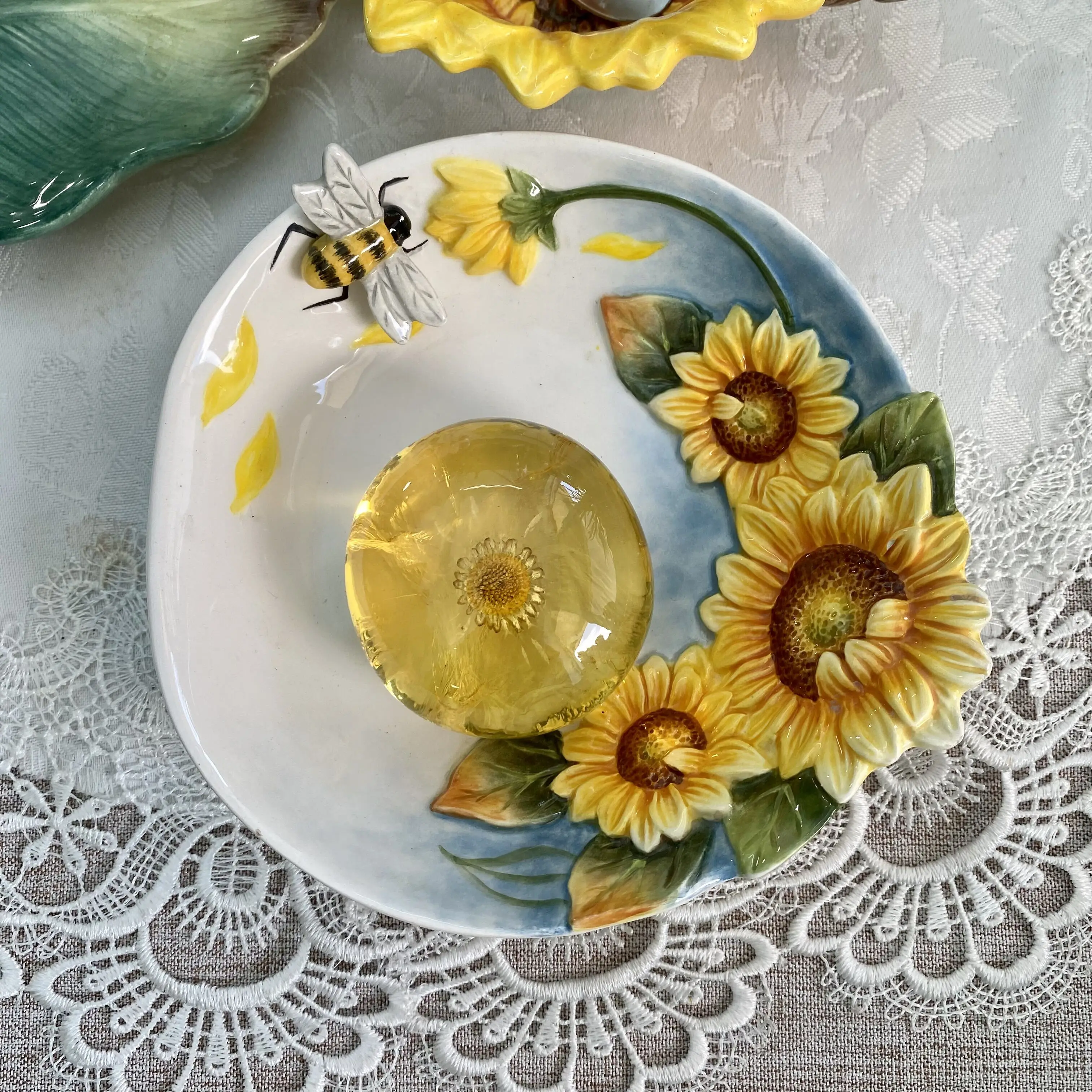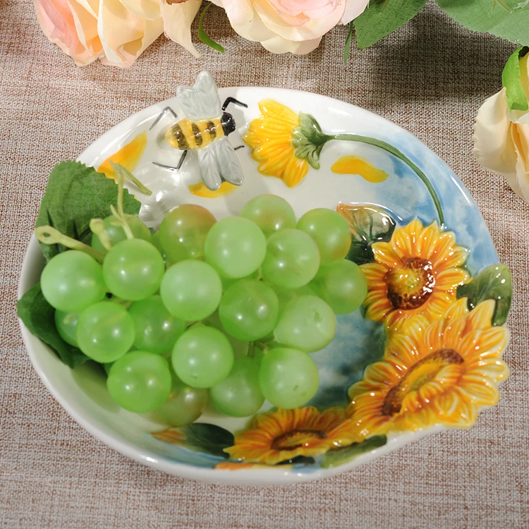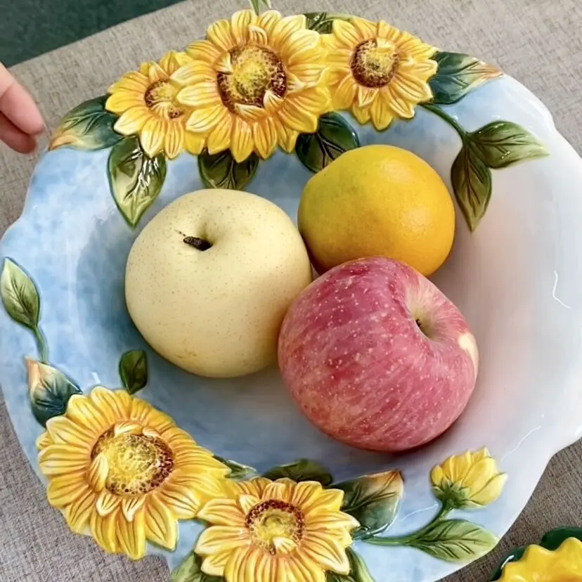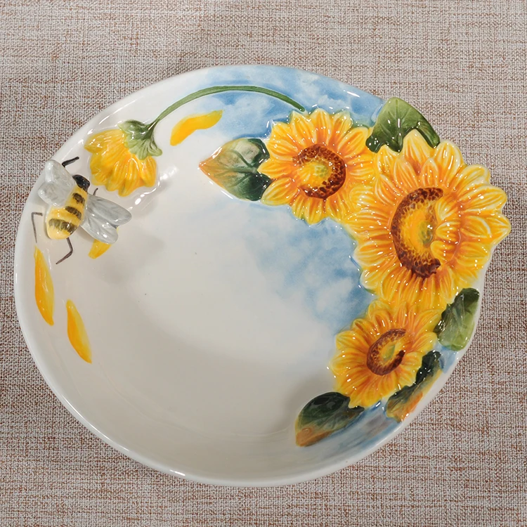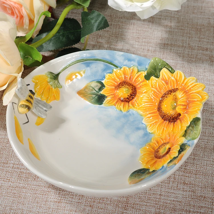 [Introduction] : Underglaze painted ceramic carving baked, hand-painted delicate, three-dimensional hand-embossed sunflower is very beautiful, suitable for modern fashion home. Gift giving is very upscale.
