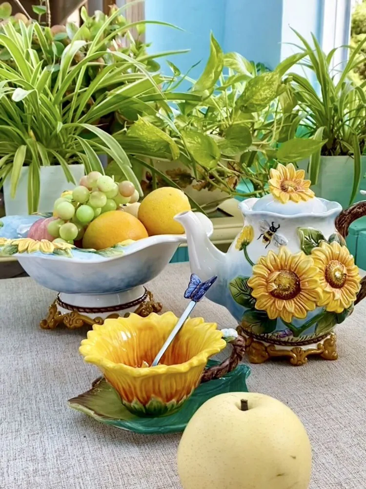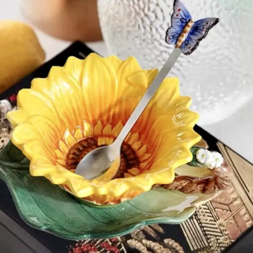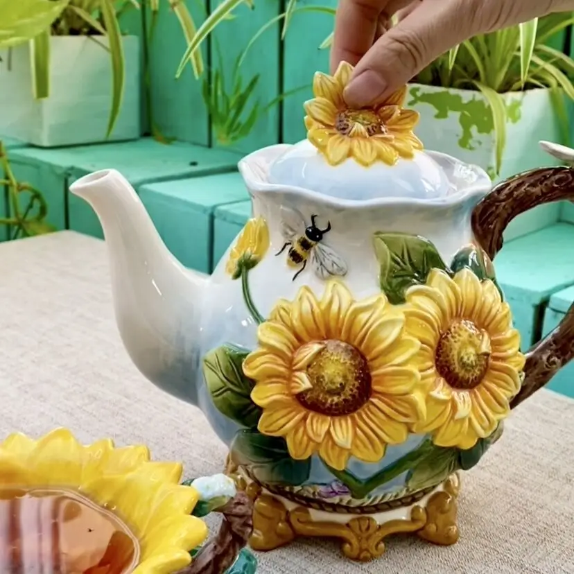 3d stereo Sunflower Ceramic Teapot Coffee pot Coffee cup tall fruit plate dessert snack saucer Home decoration wedding gift